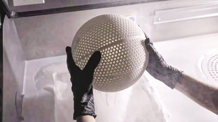 What the new Wilson prototype ball does nicely is show off the technical abilities of 3D printing and the materials it uses. The ball is printed in one piece using selective laser sintering (SLS) technology on an EOS 3D printer and has flexibility many consumers don’t associate with 3D printed products.