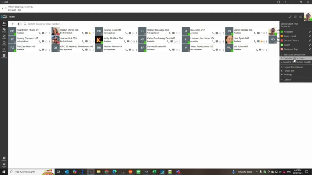 Setting Office Override for Break Time in 3CX